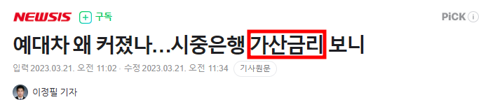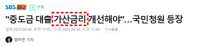 - 기준금리에 신용도 등의 조건에 따라 덧붙이는 금리 (스프레드, spread)