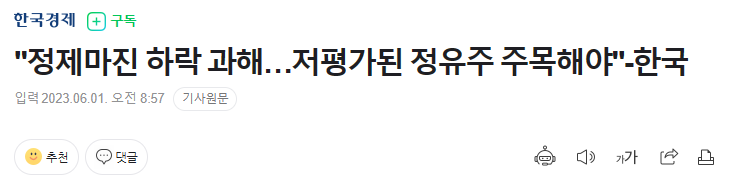 - 최근 정제마진이 떨어지며 저평가받고 있는 정유주에 집중해야 한다는 시각도 제시