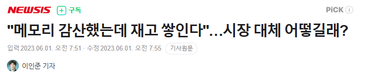 - 뼈를 깎는 감산을 진행중이지만 수요 부진으로 재고가 더 늘고 있다고 진단, 재고 부담은 다시 제품 하락으로