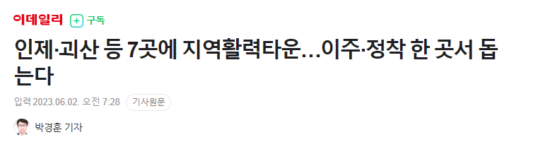 ▷2일, 행정안전부 '지역활력타운 조성사업' 공모 결과