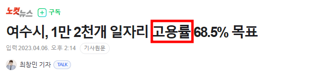 - 고용률(%) = 취업자 / (15세 ~ 64세 이상인구) x 100