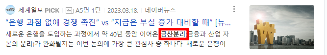 • 산업자본이 은행 지분을 일정한도 이상 소유하지 못하도록 하는 것