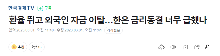 | 기준금리 동결에 따른 반응들 (1) | 2023.02.24 |