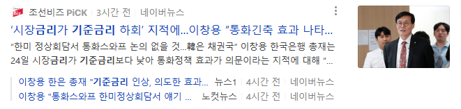 • 한국은행 금융통화위원회에서 결정하는 정책 금리