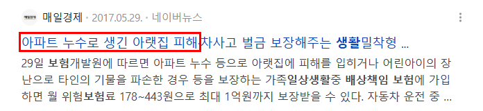 - 보장 상황 : 아이가 자전거를 타다 남을 다치게 하거나, 집 누수로 아랫집에 피해를 준 경우 등 일상에서 자주 발생하는 배상책임