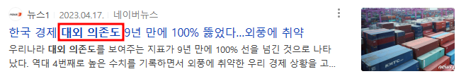 - 높은 대외 의존도는 국민경제의 구조적 불안정 요인으로 작용으로 위험함을 초래할 수 있다.