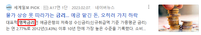 • 명목금리 : 돈의 가치 변동을 고려하지 않고 외부로 표현된 표면상의 금리