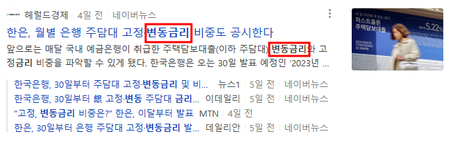 - 시장금리를 반영하여 일정 주기별로 약정금리가 변하는 금리를 의미