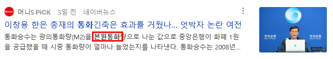 - 현금통화는 실제 화폐로서 존재하는 돈, 지준예치금은 예금통장에 찍힌 숫자로서 존재하는 돈