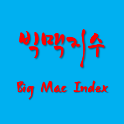 - 각국 통화의 구매력 정도 또는 환율 수준을 측정하기 위해 일물일가의 법칙을 햄버거 가격에 적용한 지수