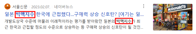 - 영국에서 발행되는 주간 경제전문지 이코노미스트지에서 1986년 이래 매년 전 세계적으로 판매되고 있는 맥도널드의 빅맥 가격을 비교, 분석해서 발표