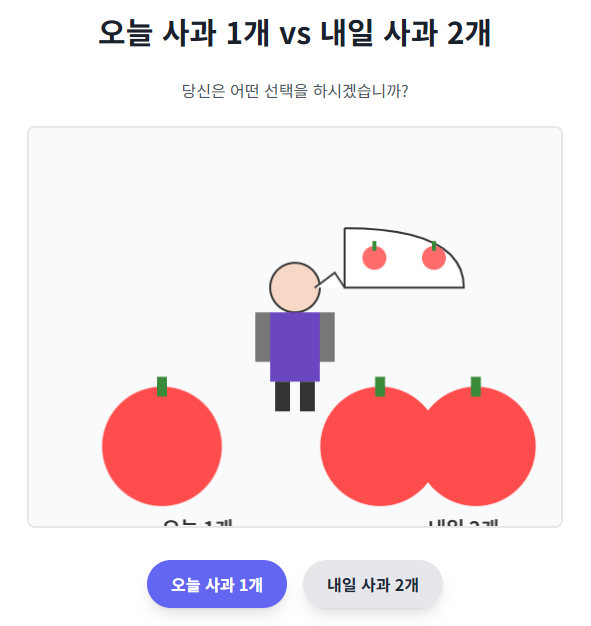 "오늘 사과 1개 받을래요, 아니면 내일 사과 2개 받을래요?"