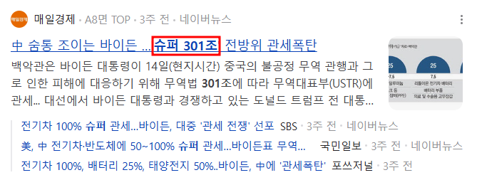 • 중국 또한 바이든 정부의 이런 관세 폭탄 조치에 대해 맞선 가능성이 크다.