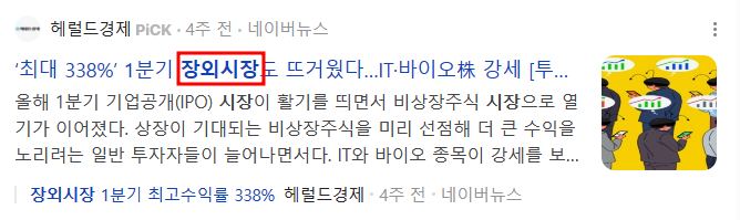 - 장내시장이 아닌 시장에서 중개기관을 통해 개별적으로 거래가 이루어지는 시장을 말한다.