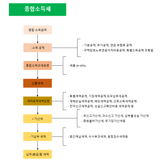 같은 금액이어도 종합소득 또는 퇴직소득, 양도소득에 따라 적용세율이 달라진다.