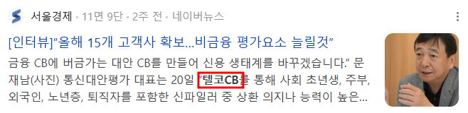 - 이동통신 3사 합작 법인사인 통신대안평가, 통신 데이터를 활용해 개인의 신용을 점수화하는 평가 모델 서비스 계획