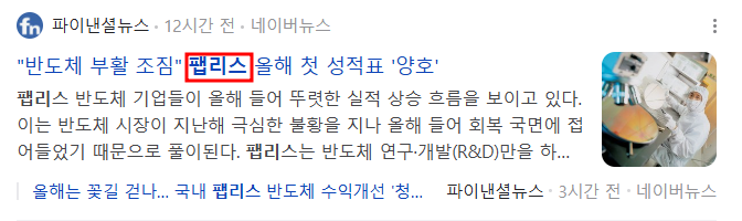 - 제주반도체, 동운아나텍, 텔레칩스 등 매출 증가 또는 실적 개선 흐름