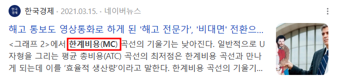 - 비용증가분을 생산증가분으로 나눈 값이다.