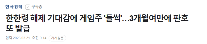 중국 정부, 한국산 게임에 중국 내 게임 서비스 허가한다는 소식에 게임주 주가가 들썩이고 있습니다. 한국 게임을 포함한 27종의 외국산 게임 수입 허가의 영향. 중국이 2017년부터 지속돼 온 한한령이 본격 해제되고 있다는 관측.