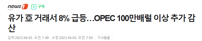 국제유가가 아시아 거래에서 8%넘는 급등세. 파이낸셜타임스, 블룸머그등에 따르면 3일 아시아 오전 시간대 거래에서 북해 브렌트유와 미국 텍사스원유 선물은 각각 배럴당 86, 81달러서으로 움직임. OPEC + 가 추가로 원유 생산을 하루 평균 100만 배럴 이상 줄이기로 깜짝 결정.