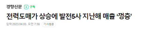 지난해 국제 에너지 가격 상승으로 한전의 5개 발전 자회사들의 매출이 크게 늘어난 것. 이 중 4개 사는 전력 판매량이 줄었지만 판매 수익은 늘어남. 서부발전의 작년 매출은 8조 1774억 원으로 전년 대비 63.5% 증가 영업이익은 2292억 원을 기록해 흑자 전환. 러시아 우크라이나 전쟁 장기화로 지난해 국제유가와 액화천연가스가격의 급등하면서 SMP도 상승세.