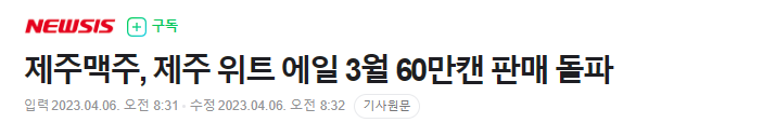 제주맥주, 지난 달 제주 위트 에일 판매량이 60만 캔을 돌파. 제주 위트 에일은 2017년 제주맥주에서 출시한 첫 제품.