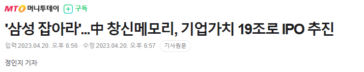 ▷중국 D램 제조업체인 창신메모리테크놀로지(CXMT)