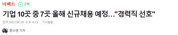 - 100인 이상 기업 500개사를 대상, 2023년 신규채용 실태조사 결과 발표