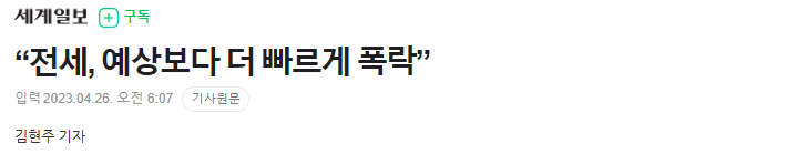 - 감액 갱신 계약 급증 원인 : 주택 가격 하락으로 세입자를 찾지 못하는 '역전세난' 때문에