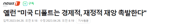 - 미국 디폴트 위험이 커지고 있다고 경고