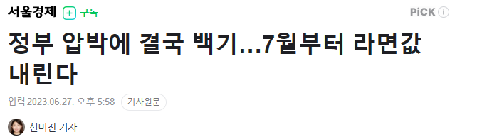 - 국제 밀 가격이 하락으로 물가 안정 차원에서 라면 값도 내려야 한다는 정부의 권고에 따른 움직임으로 해석