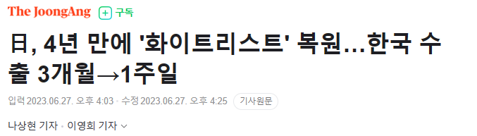 - 2019년 7월 불화수소, 플로우린폴리이미드, 포토레지스트 등 반도체 3대 핵심소재의 한국 수출 규제에 나선 지 4년만.
