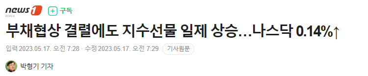 ▷ 백악관에서 열린 부채협상 성과없이 결렬됐지만 미국 지수선물 일제히 상승