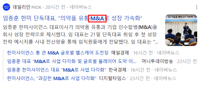 - 기업경영의 효율성 제고와 시너지효과 창출등을 위해 외부경영자원을 활용하는 것으로 '인수합병'이라고 한다.
