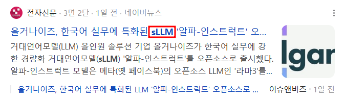 - 옛 페이스북의 오픈소스 LLM인 '라마 3'을 기반으로 8B(80억) 규모 sLLM