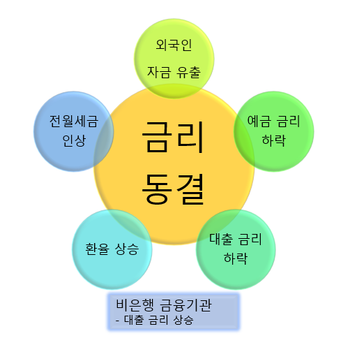 금통위가 국내외 경제주체들에게 한국 긴축 완료의 신호를 보낸 것이 아닌가 하는 지적이 나오고 있습니다. 현재 미국과의 금리차가 1.25%이고, 미국의 긴축이 더 길어질 전망이 되고 있는데요, 그 수익률을 좇아 다니는 외국인 자금은 빠져나가고 완화 가치가 떨어질 가능성이 커지고 있습니다.