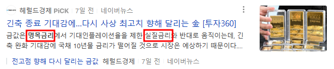 - 실질금리 : 물가 상승률을 고려한 금리를 의미