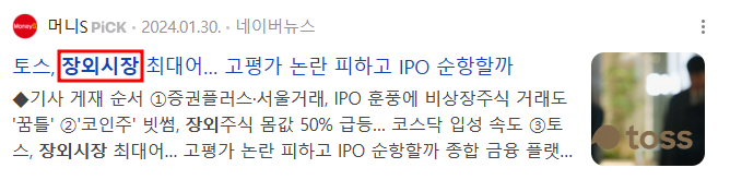 - 장내시장이 아닌 시장에서 중개기관을 통해 개별적으로 거래가 이루어지는 시장을 말한다.