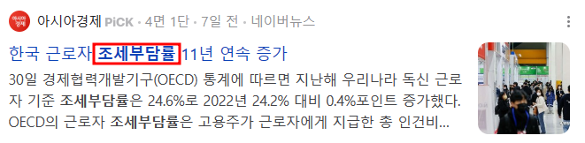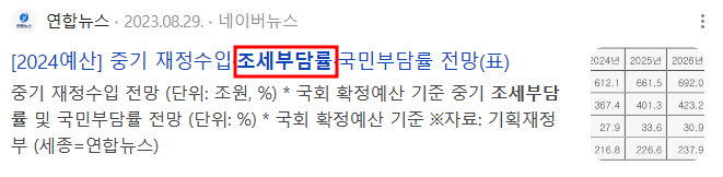 - 조세부담률이 높다는 것은 국민들이 벌어들인 소득 중에서 세금으로 납부하는 비중이 높다는 것이다.
