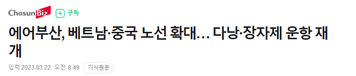 에어부산이 지난해 중단된 인천-베트남 다낭노선, 부산-베트남 나트랑등을 재개하기로 함. 탑승률도 90%를 웃돌았다.