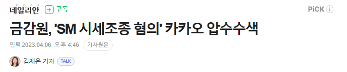 금감원은 하이브가 에스엠 공개매수할 때 카카오와 카카오엔터테인먼트가 에스엠 주식을 대량 매집 사실에 주목. 대량 매집 당시 특정 계좌를 통해 에스엠 주식 65만 주 매수. 하이브는 이에 대해 금감원에 조사 요청함.